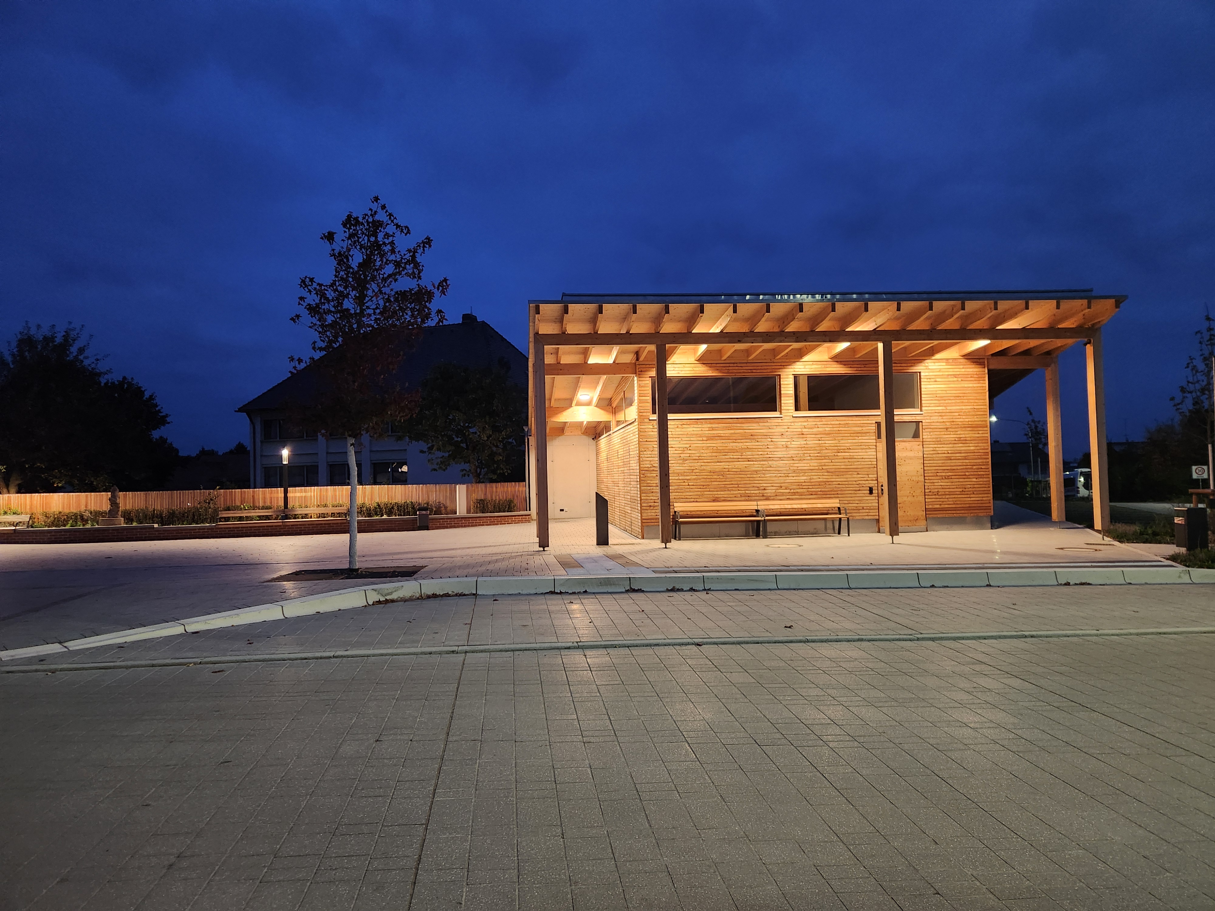 überdachten Buswartebereich sowie einen Multifunktionsraum umfasst. Dieser Raum steht den