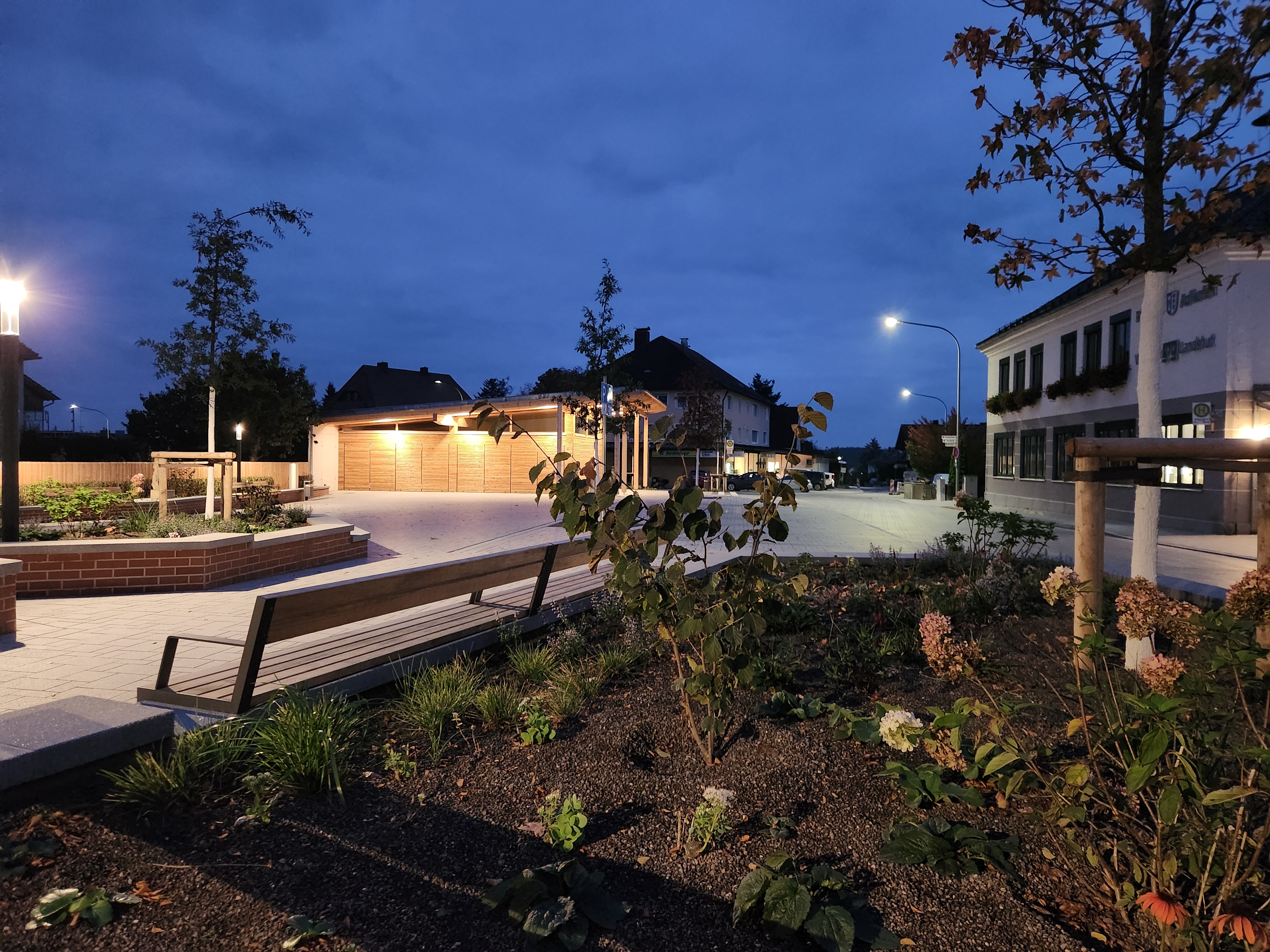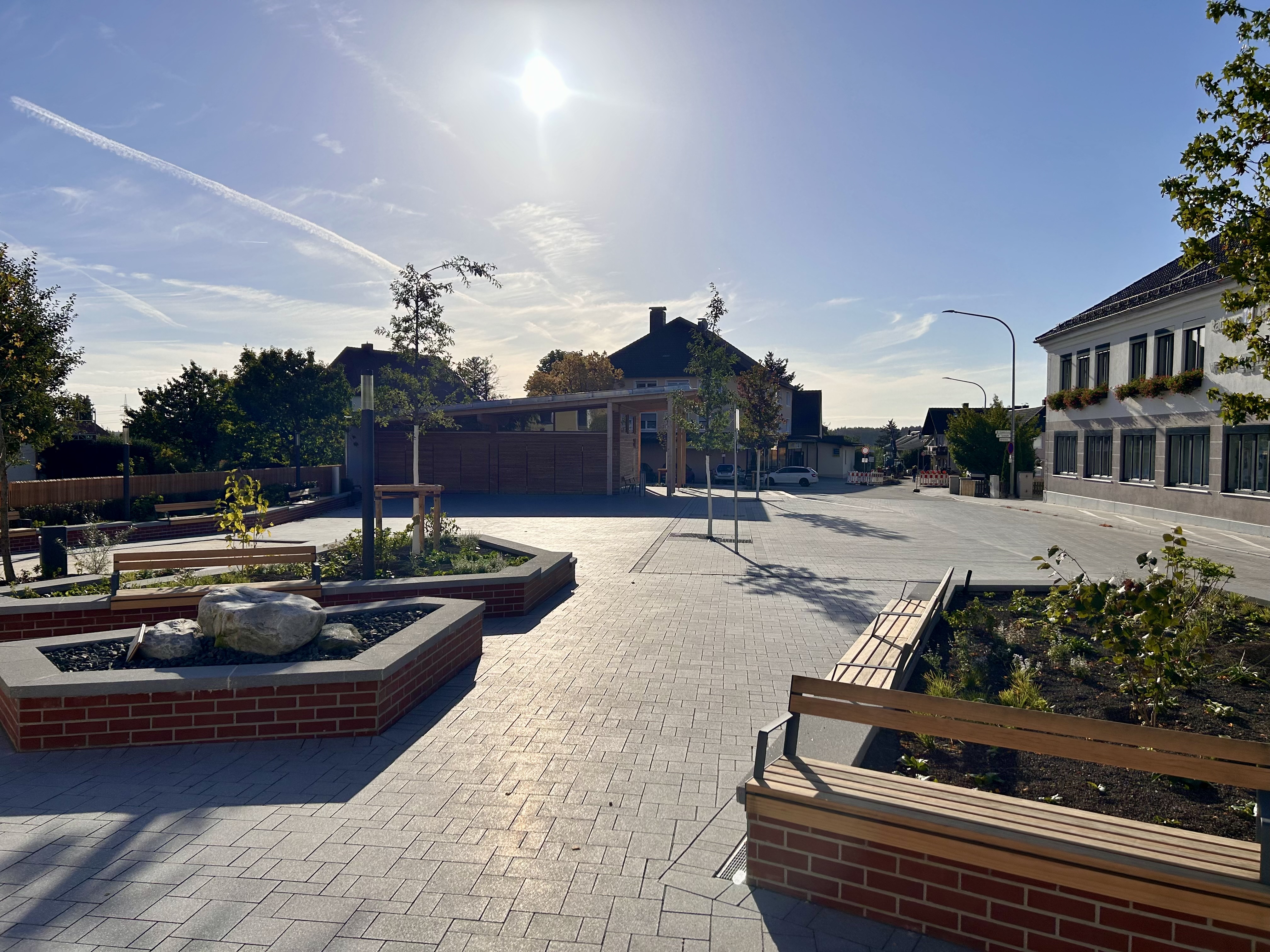 Im Herzen von Adlkofen ist ein neuer Dorfplatz entstanden, der mit hoher Aufenthaltsqualität und