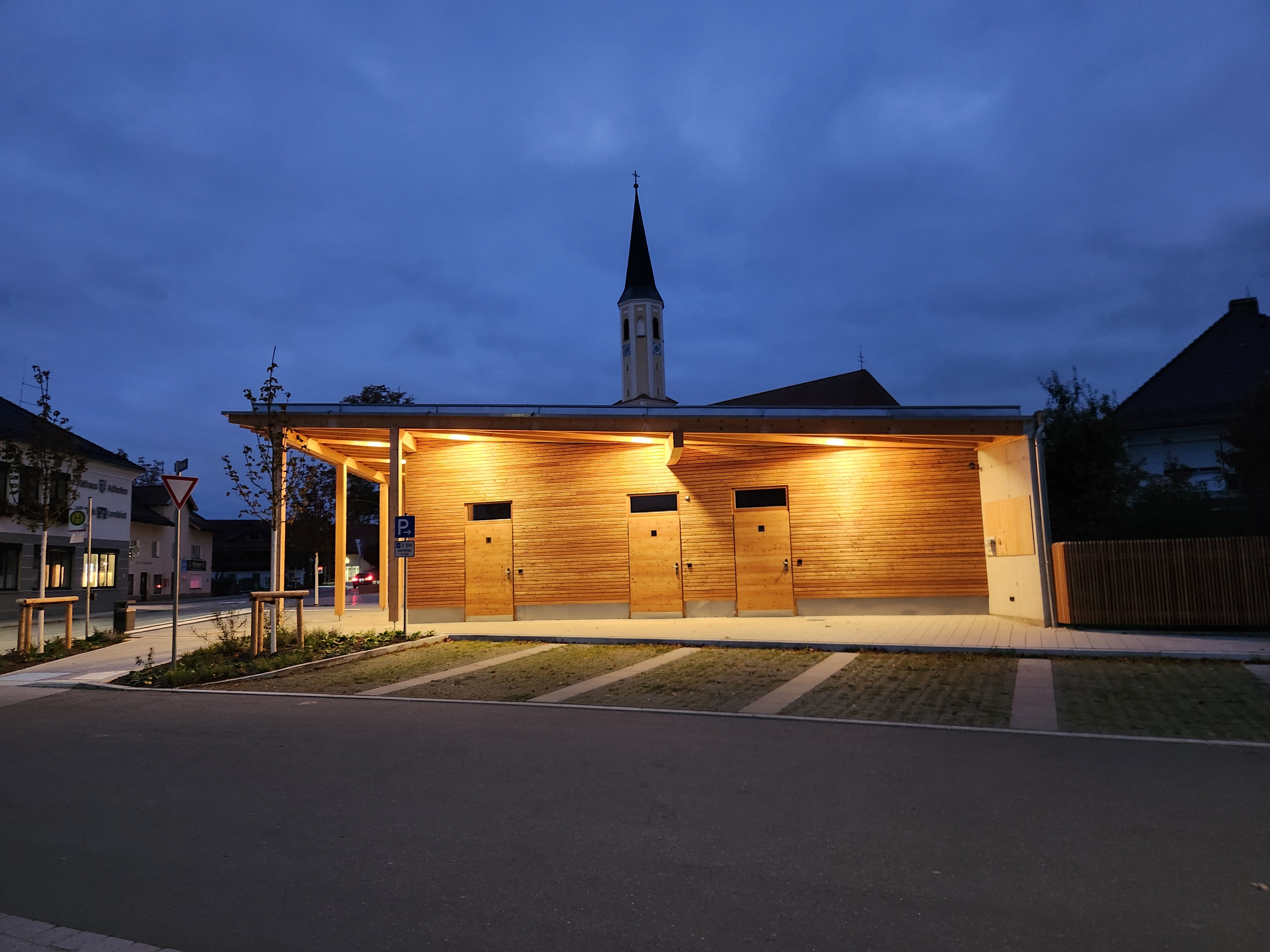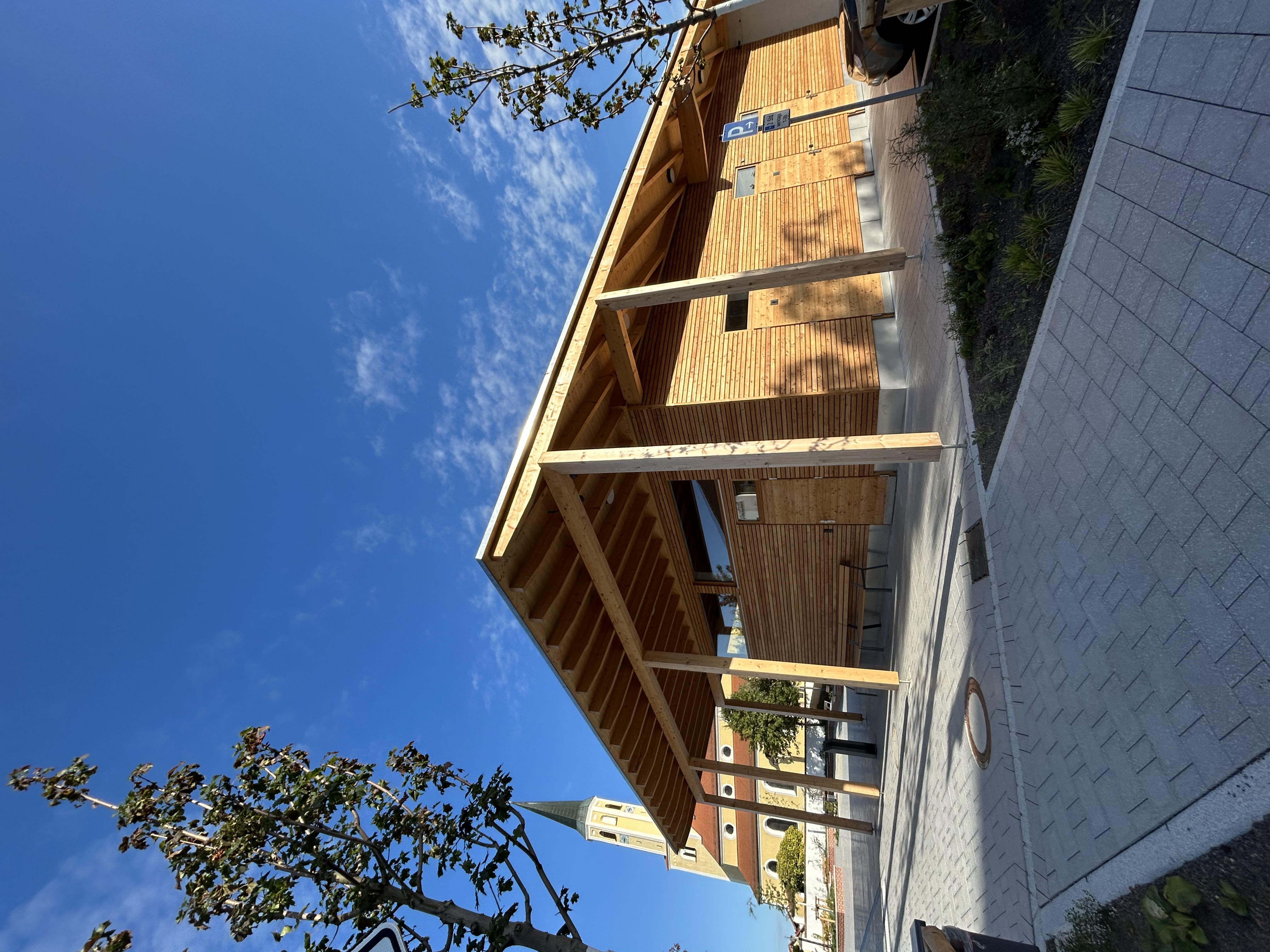 zusätzlicher, überdachter Bereich, der den Platz flexibel nutzbar macht – etwa für Feste, Märkte oder